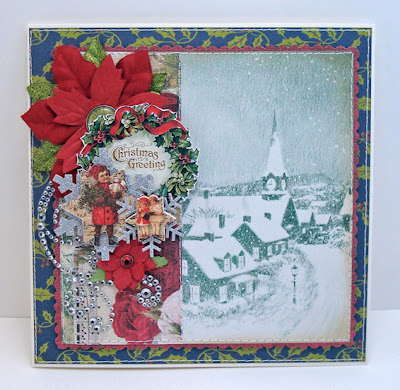 for the centerpiece of my card, i chose a very pretty illustration from one of my treasured ideals christmas magazines, which i've embellished with some new and digital products, and i'm quite pleased with the result: