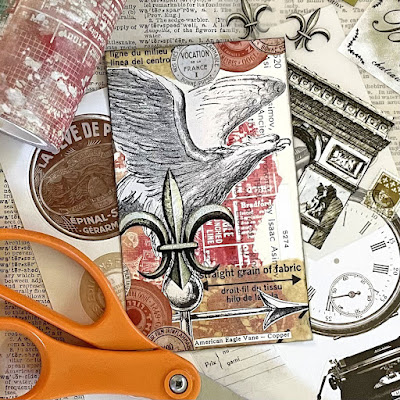 This eclectic collage has stickers, ancient rub-ons (that surprisingly still worked perfectly?!) part of a sewing pattern, wide washi tape and an American Eagle handsome enough to be (one suspects) a bit of a Weather VAIN...