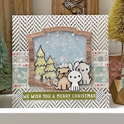 I always love cards built on my well-hoarded stash of Hambly Screen Print transparencies... I always love coloring the Pretty Pink Posh Holiday Pals... and I always love shaker cards. This baby is all of those AND features random strips of washi tape, to boot!